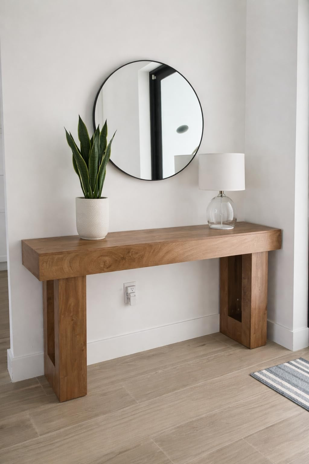 Wooden Sofa Table, 63-Inch Console Table For Entryway