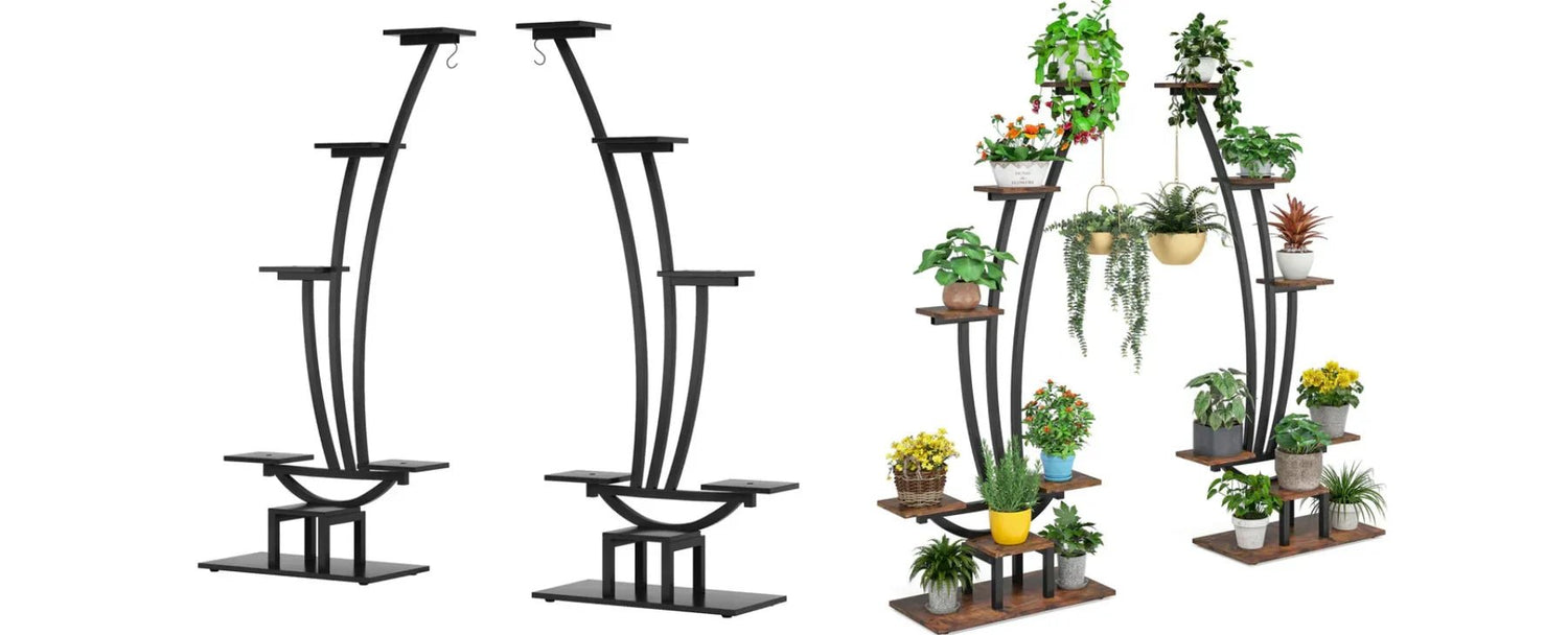 For plant lovers short on space but big on style, this 7-tier artistic plant stand is a smart solution. Its compact footprint (just 11" x 10") makes it perfect for small apartments, corners, or patios, while the high-low shelf design ensures every plant gets ample sunlight.