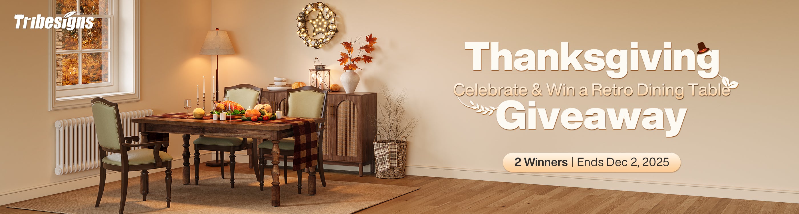 🦃 Tribesigns Thanksgiving Giveaway: Win a Retro Dining Table for Your Home! 🥳
