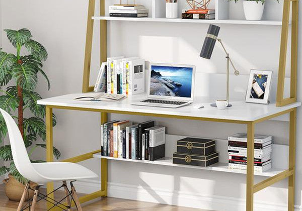(1) DESK & BOOKSHELF TWO-IN-ONE: Its vertical design features a open bookshelf and attached a hutch saves floor space while enhancing storage options. And even with all your stuffs it still feels spacious!