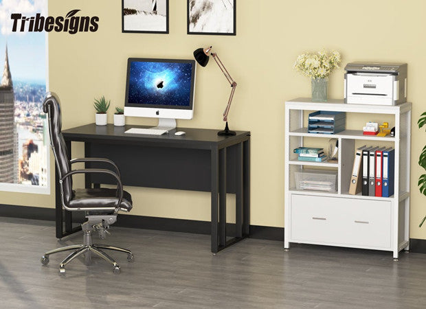 【MULTIFUNCTIONAL & SLEEK】: This filing cabinet with open storage spaces, file drawer and storage cabinet is designed to keep the office machines, paper, files and suppliers organized. It can be fixed beside desk. The sleek and modern finish is an easy fit for any office or home study room.