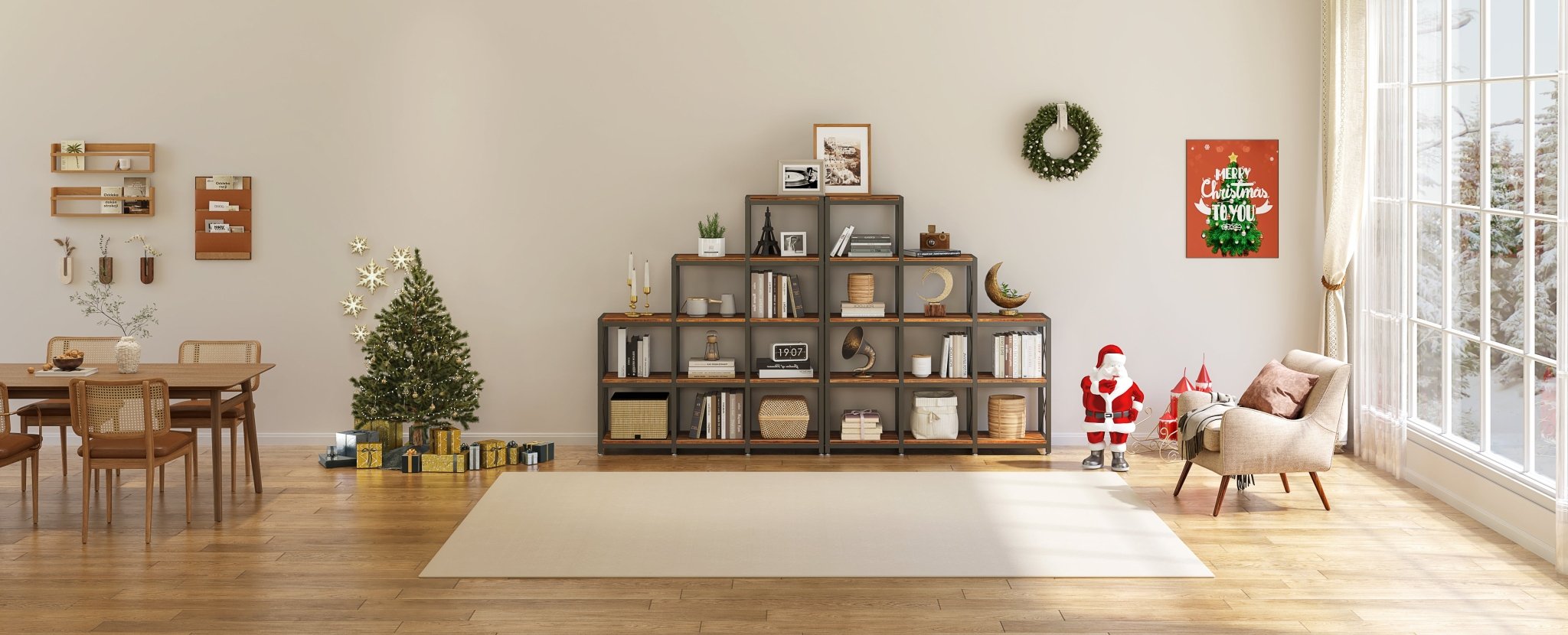Redefine your living room this New Year with Tribesigns top-notch Bookshelves, Etagere Shelves, and Plant Stands, curated for aesthetic and functional needs.