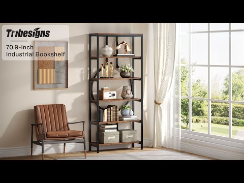 6-Tier Bookshelf, 70.9" Industrial Bookcase Display Shelf
