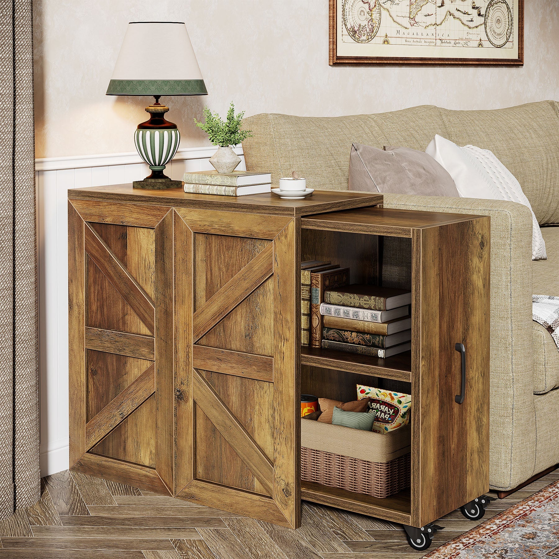 24" End Table, 2-Tier Narrow Side Table with Trapezoid Base