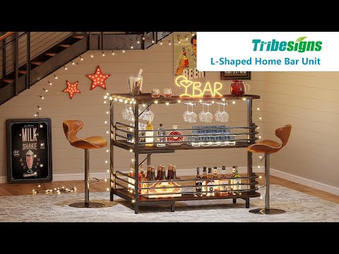 Tribesigns L-Shaped Home Bar Unit, Industrial Liquor Bar Table for Home Pub