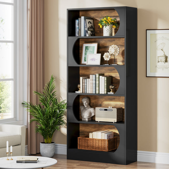 5-Tier Bookcase, 71" Wood Etagere Bookshelf with Storage Shelves