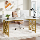Modern Minimalist Design - Give your workspace a loftier look with our chic computer desk. The white faux marble desktop and gold metal frame fit any office room style. Its sleek and minimalist design suits a wide range of environments, from a home office to a corporate one.