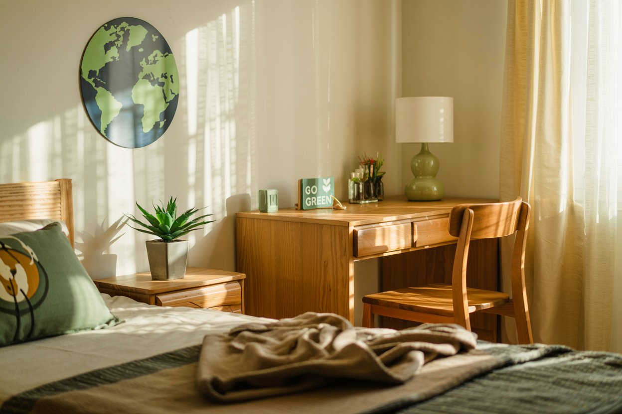 Rotating Desk with 5-Tier Bookshelf, Reversible Computer Desk with Wheels