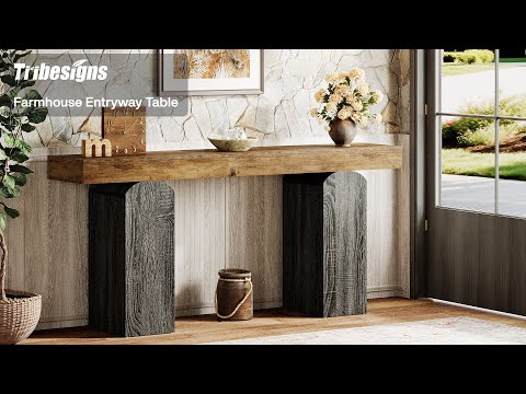 Vintage Two-Tone Design - This 63" console table features a rustic brown-grain tabletop and vintage gray-grain arched legs, embodying a unique farmhouse charm perfect for living rooms, entryways, or hallways.