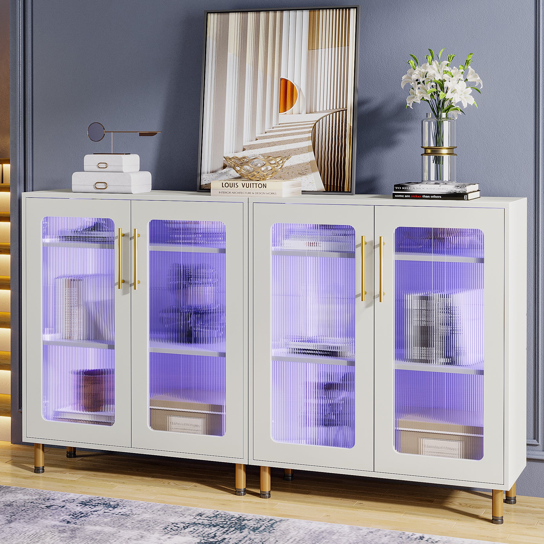 Modern Sideboard Buffet Storage Cabinet with LED Light & Acrylic Doors Tribesigns