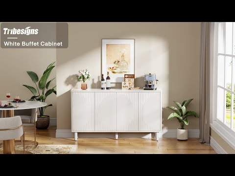 59.4" Sideboard Buffet, White Credenza Storage Cabinet with Doors