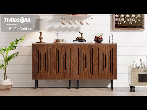 Sideboard Buffet, Set of 2 Storage Cabinet with Adjustable Shelves