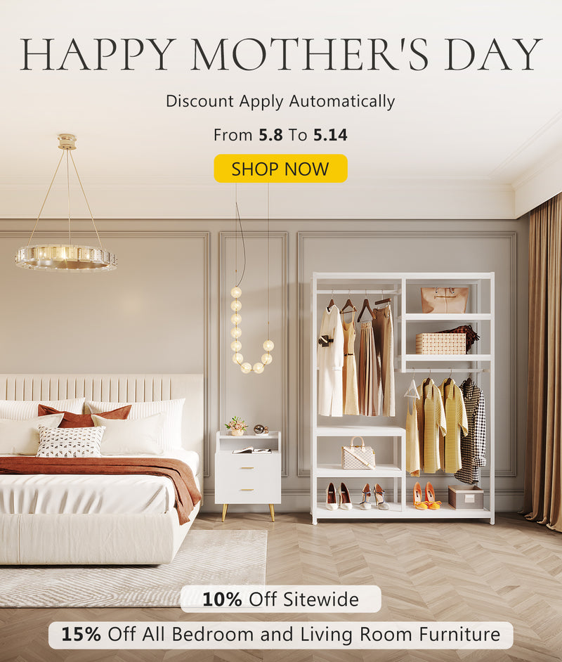 Freestanding Closet Organizer with 6 Shelves and Hanging Bar