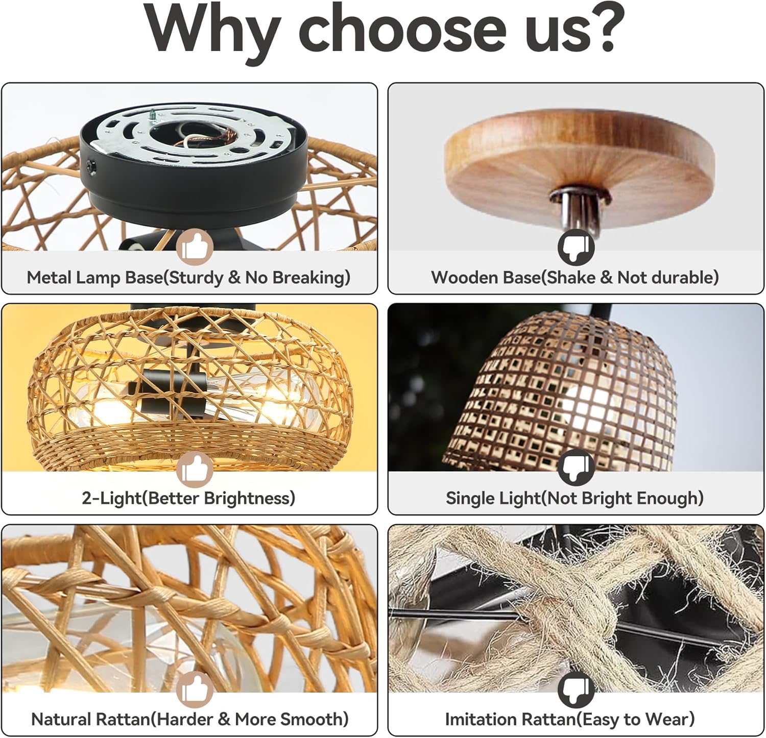 Versatile Indoor Complement - Ideal for living rooms, bedrooms, dining areas, hallways, or home offices. This rattan chandelier fits seamlessly into any indoor setting. Its warm glow and neutral tones pair well with all decor styles, modern or rustic.