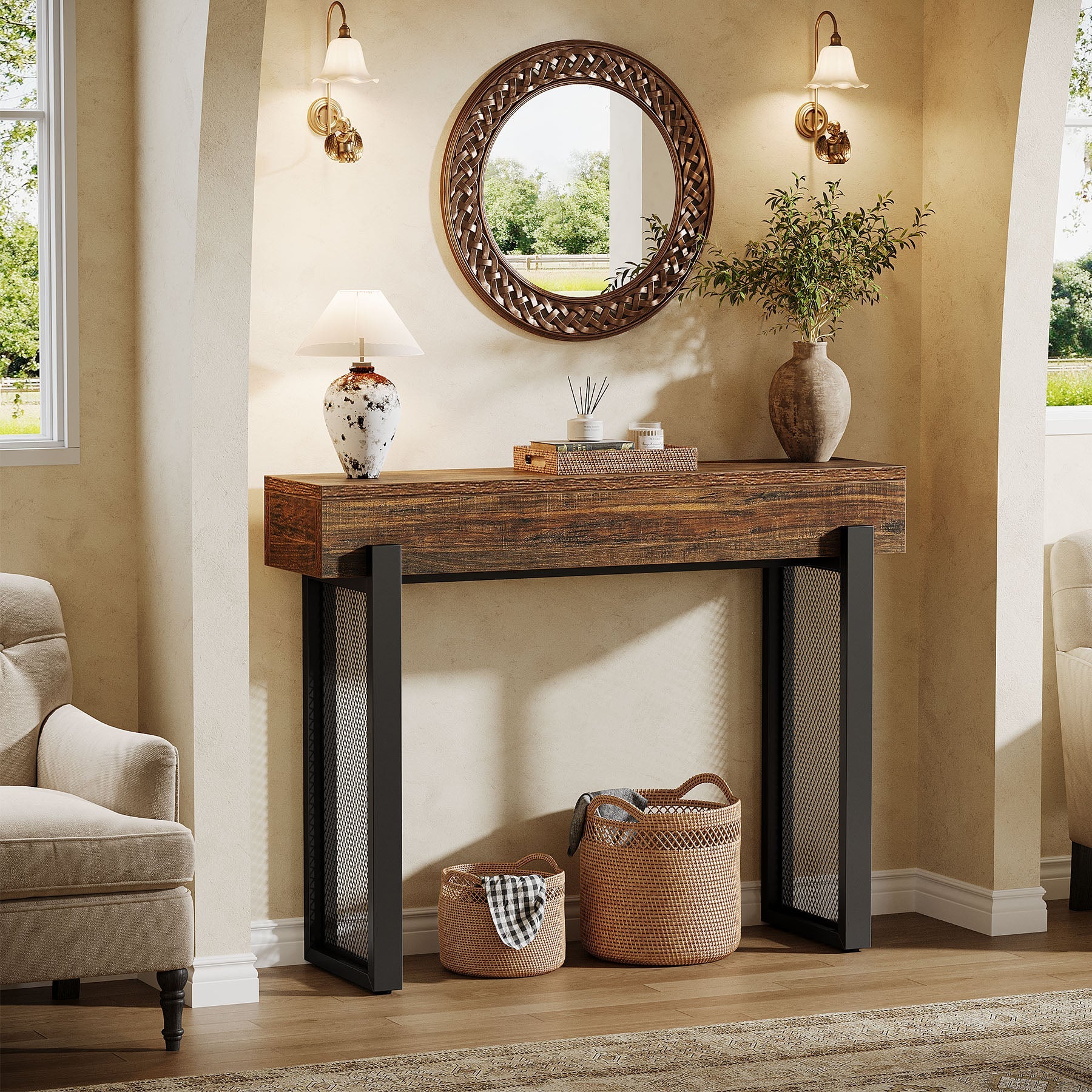 Modern Industrial Design - The Tribesigns wood entryway table blends rustic brown wood with sleek black metal mesh legs, creating contemporary industrial charm that elevates your home decor.