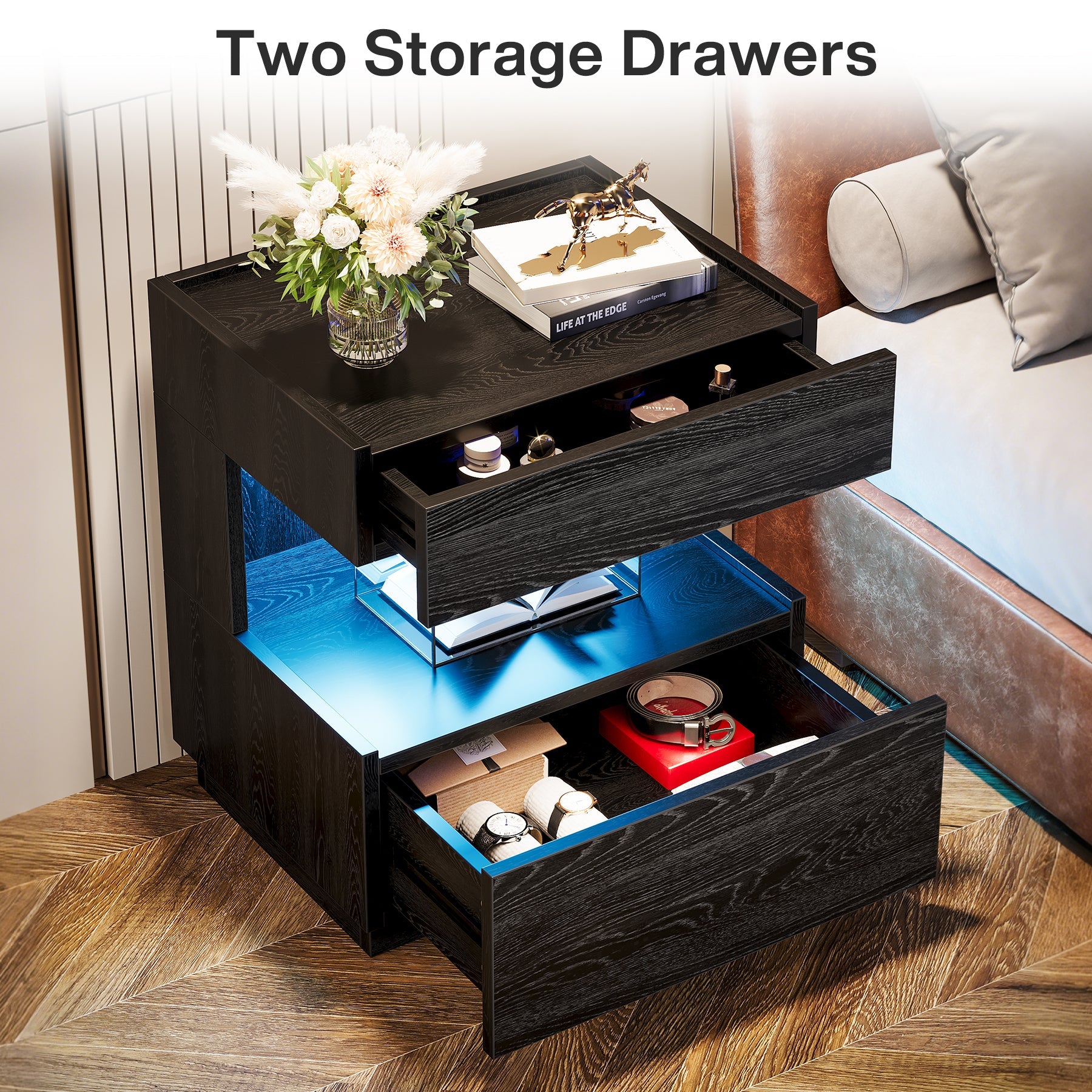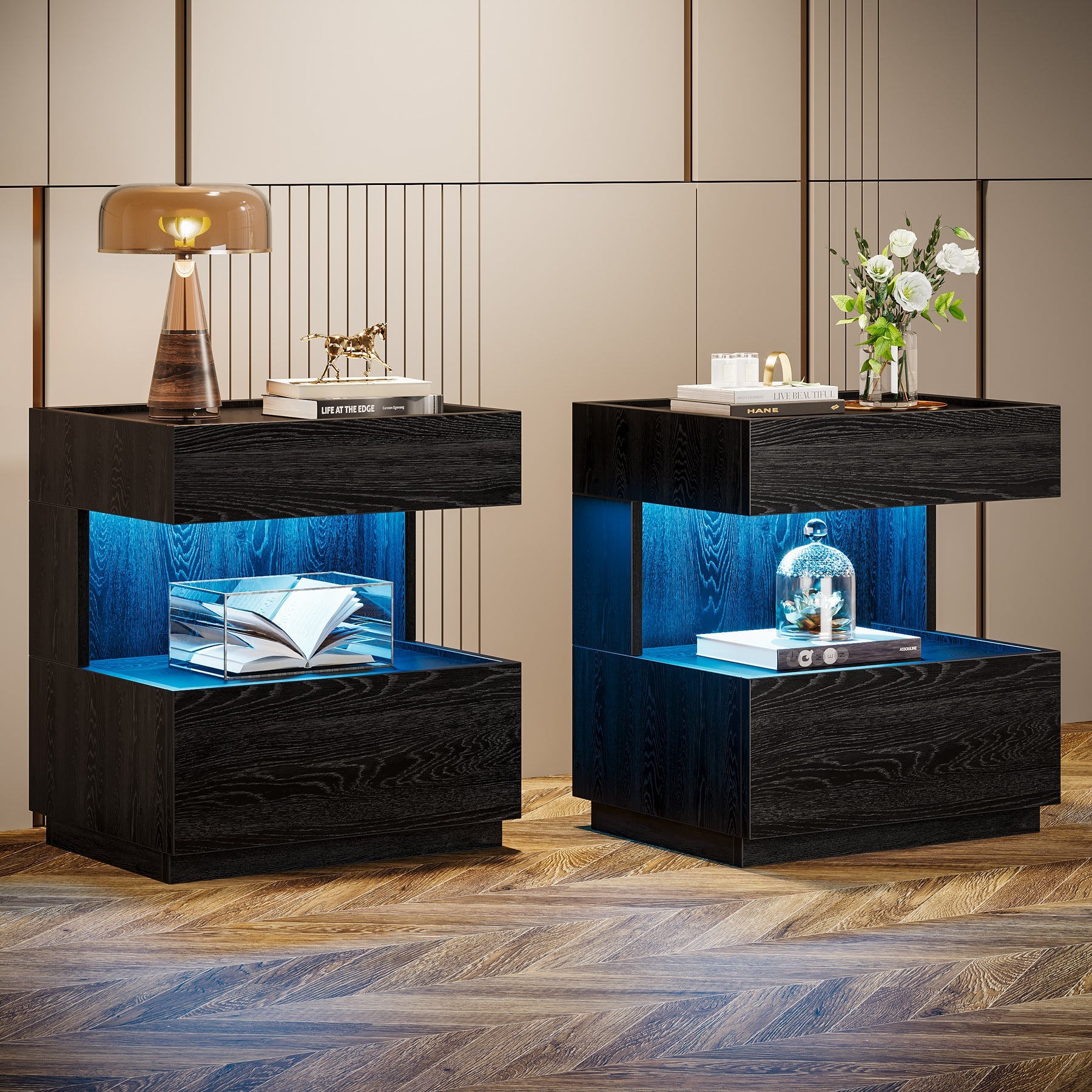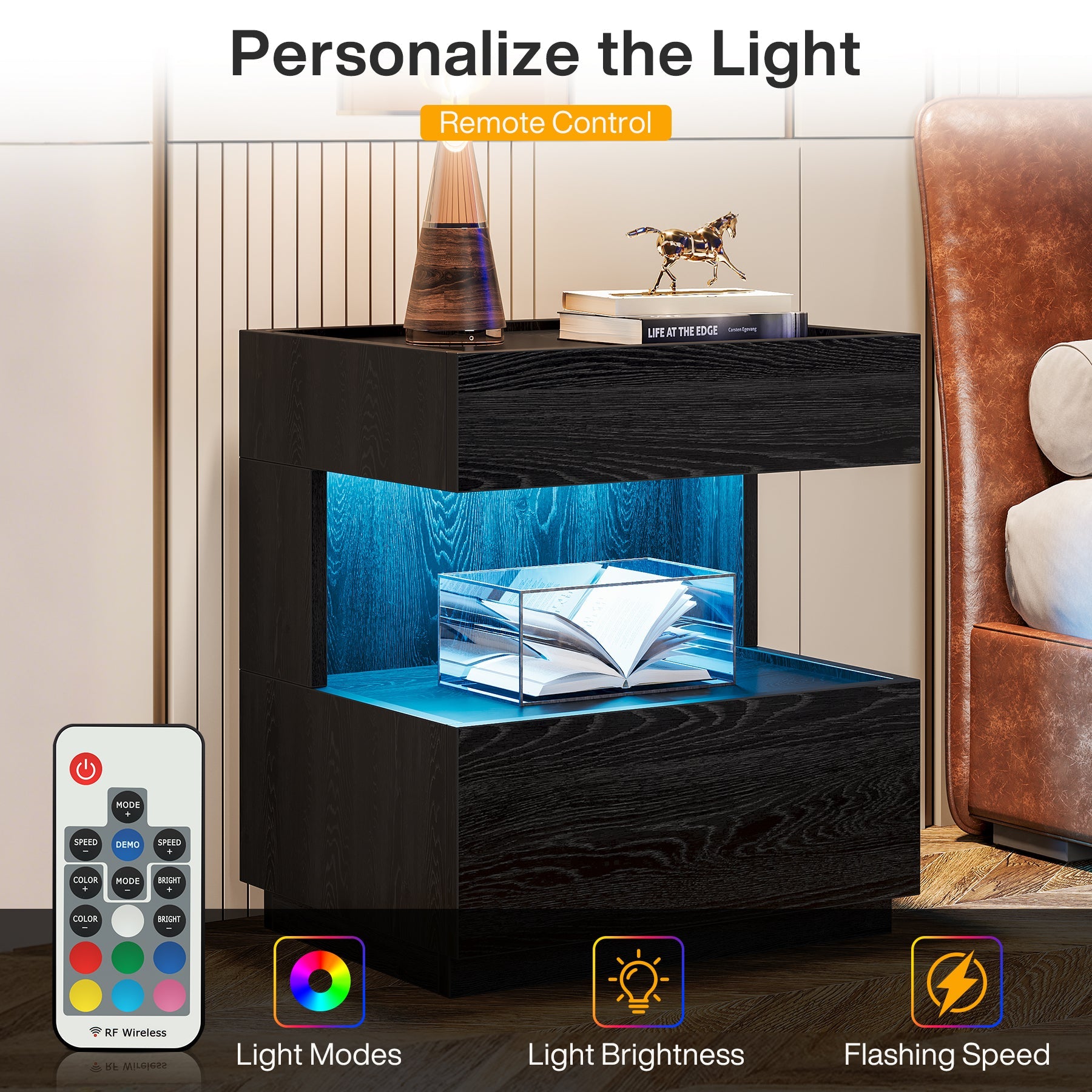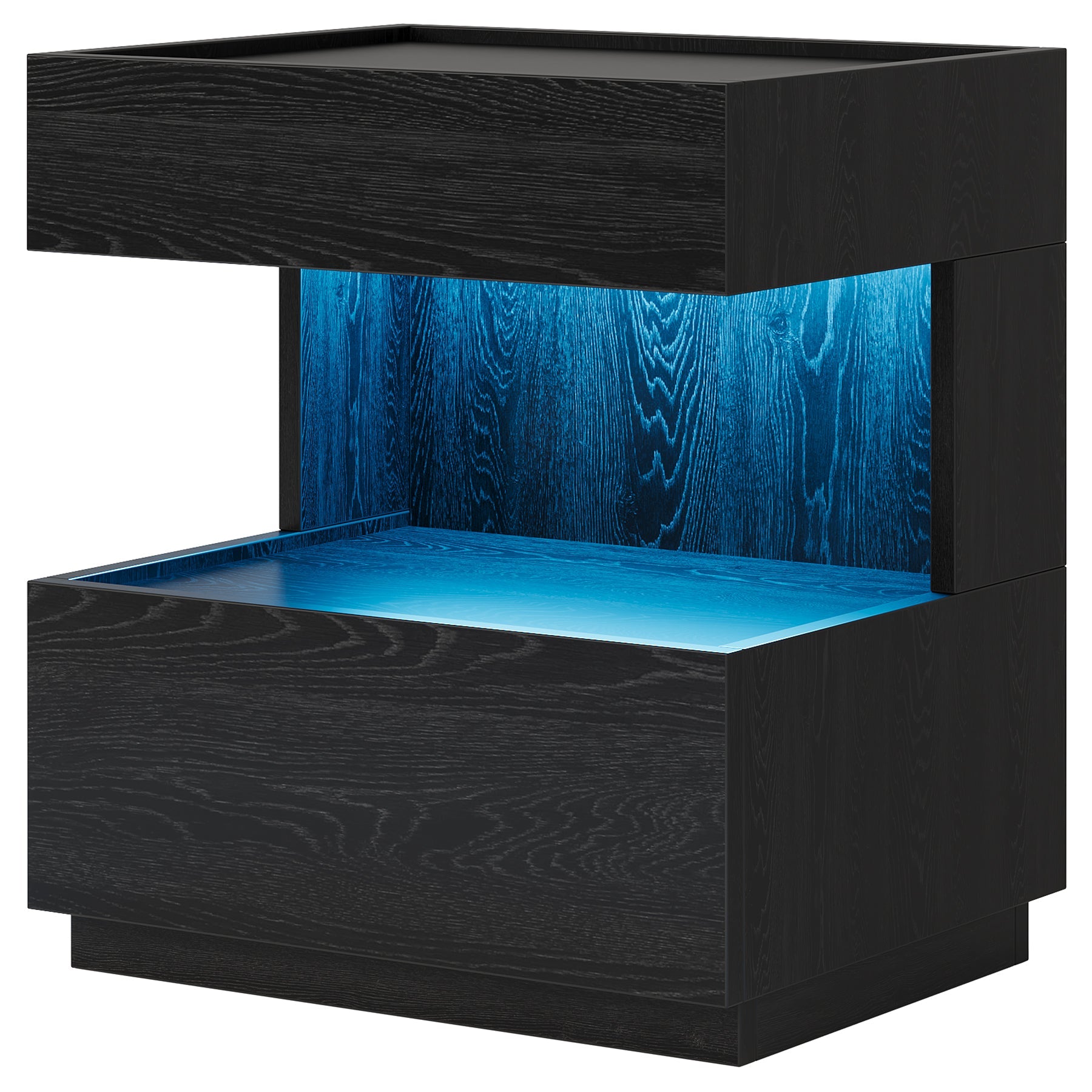 Colorful Nightstand LED Lighting - This nightstand features dynamic RGB LED lighting that can be controlled remotely, allowing color changes and mood shifts to create a personalized ambiance.