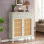 Sideboard Buffet Set of 2, Accent Rattan Storage Cabinet with Doors