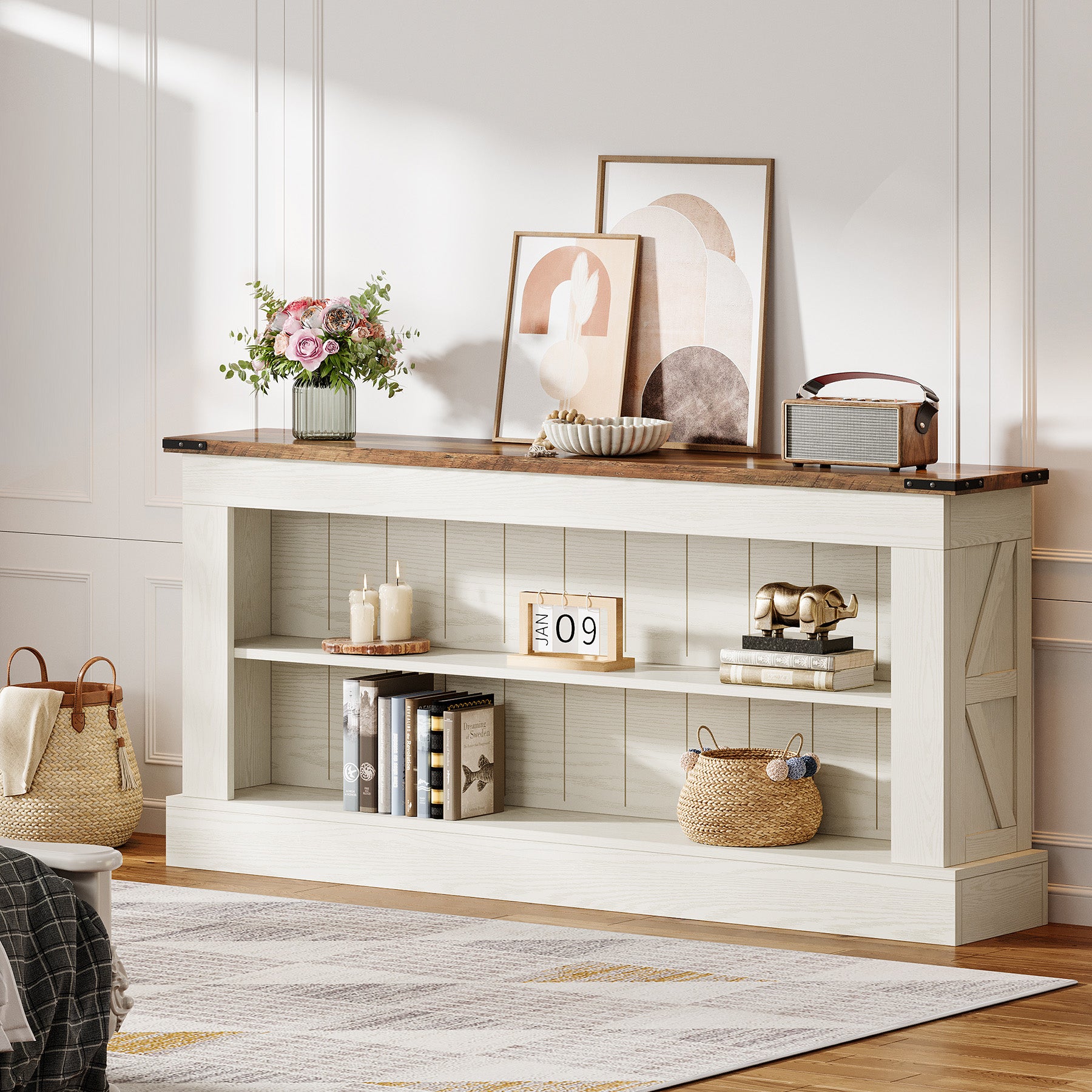Ample Storage - Equipped with a 63-inch tabletop and two open shelves, this entertainment center offers plenty of room for storing audio/video equipment, books, decor, and more.