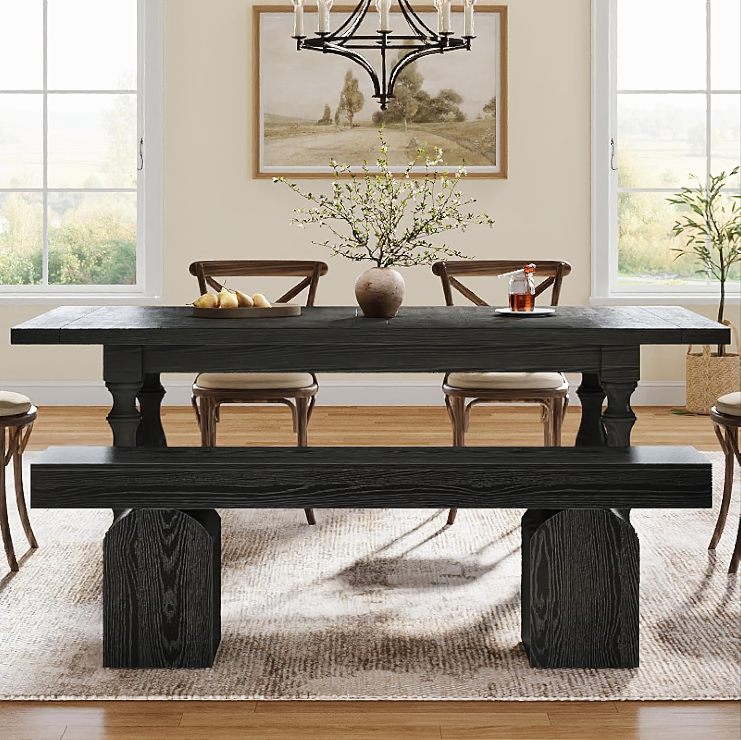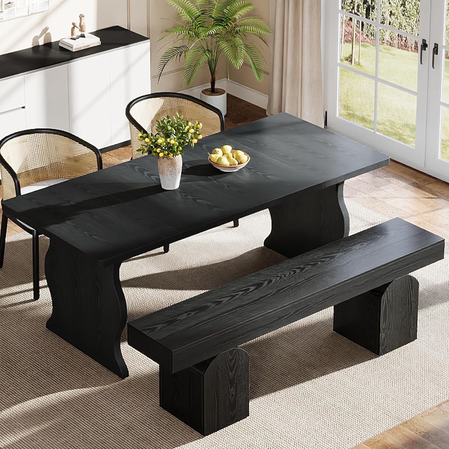 Durable and Strong - Designed from top-quality MDF, this black dining bench incorporates two hearty arched bases that evenly distribute weight, providing support for up to 400 pounds. It stands up to daily use and gatherings alike.
