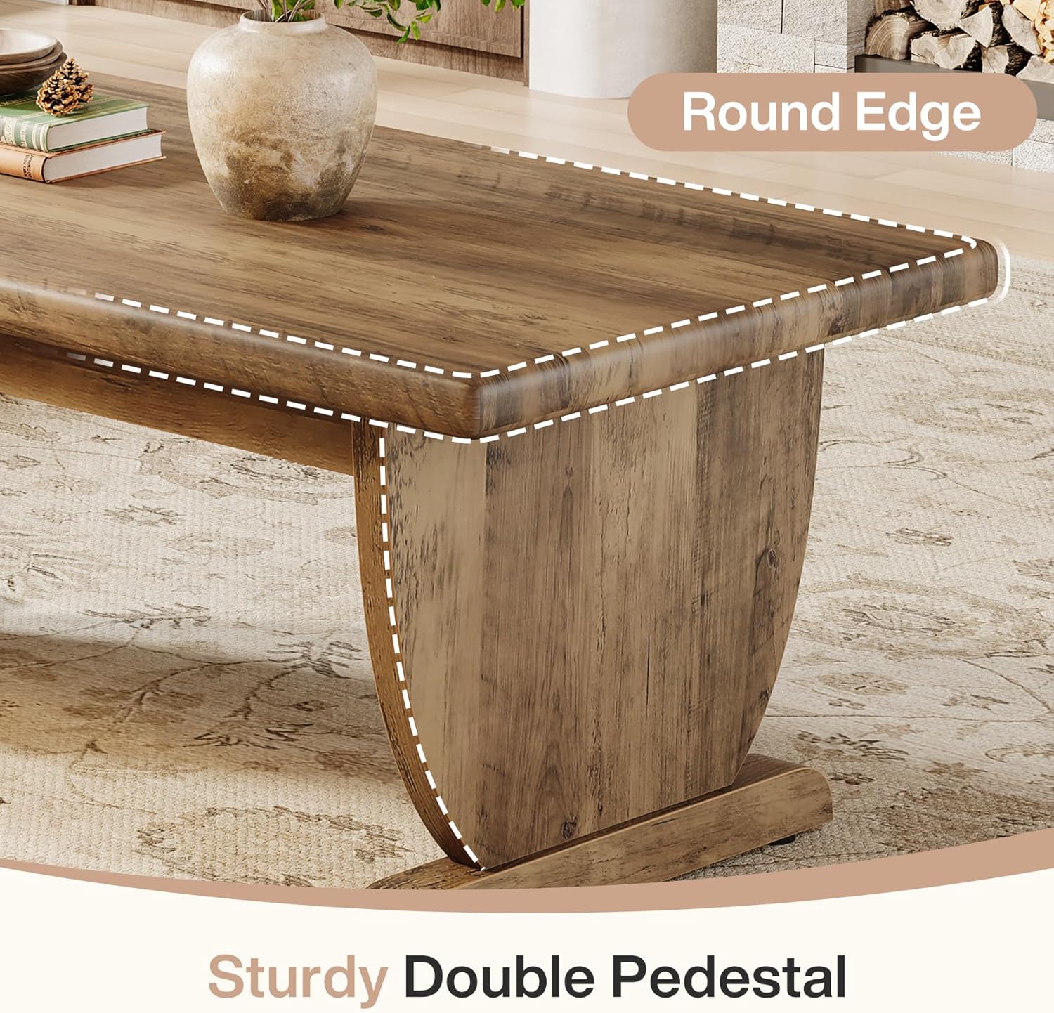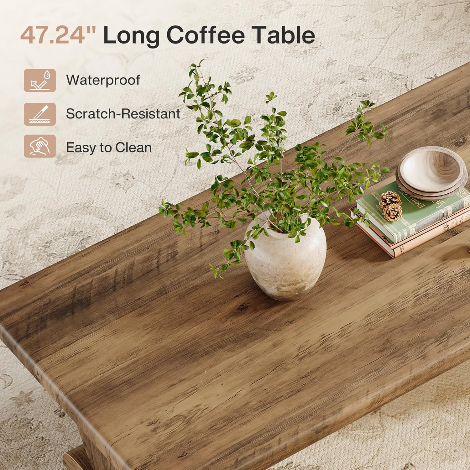 47.2" Coffee Table, Rectangle Cocktail Tea Table with Sturdy Pedestal