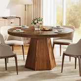 Versatile Farmhouse Dining Table - This characterful dining table pairs a warm brown MDF tabletop with a rugged hexagonal pedestal, ideal for modern, rustic, or transitional decor in a dining room, kitchen, or bistro.