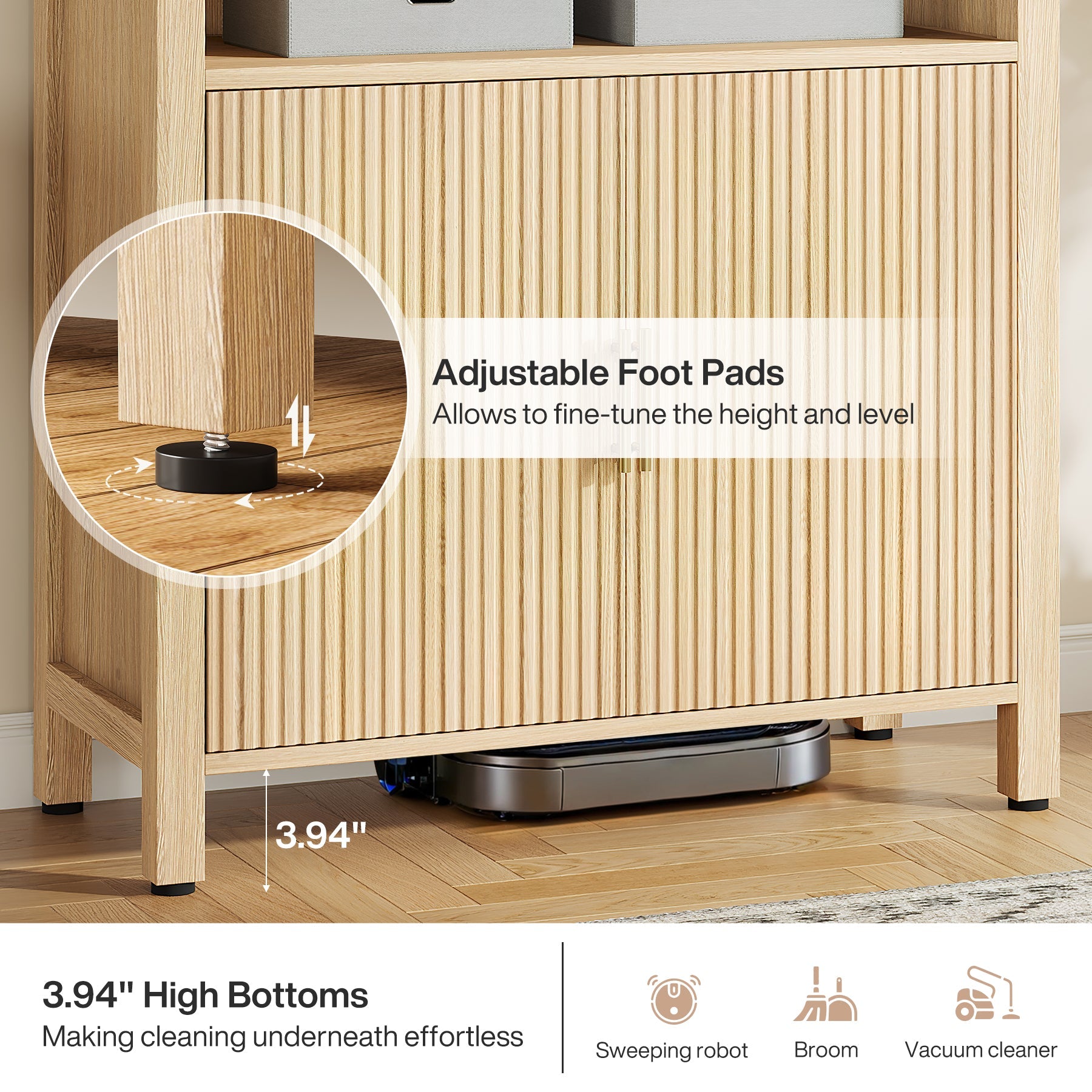 Multi-Purpose Kitchen Storage - Whether you need extra pantry space for dry goods, a stylish home for small appliances, or a display area for kitchen decor, this versatile cabinet adapts to your needs with both form and function.