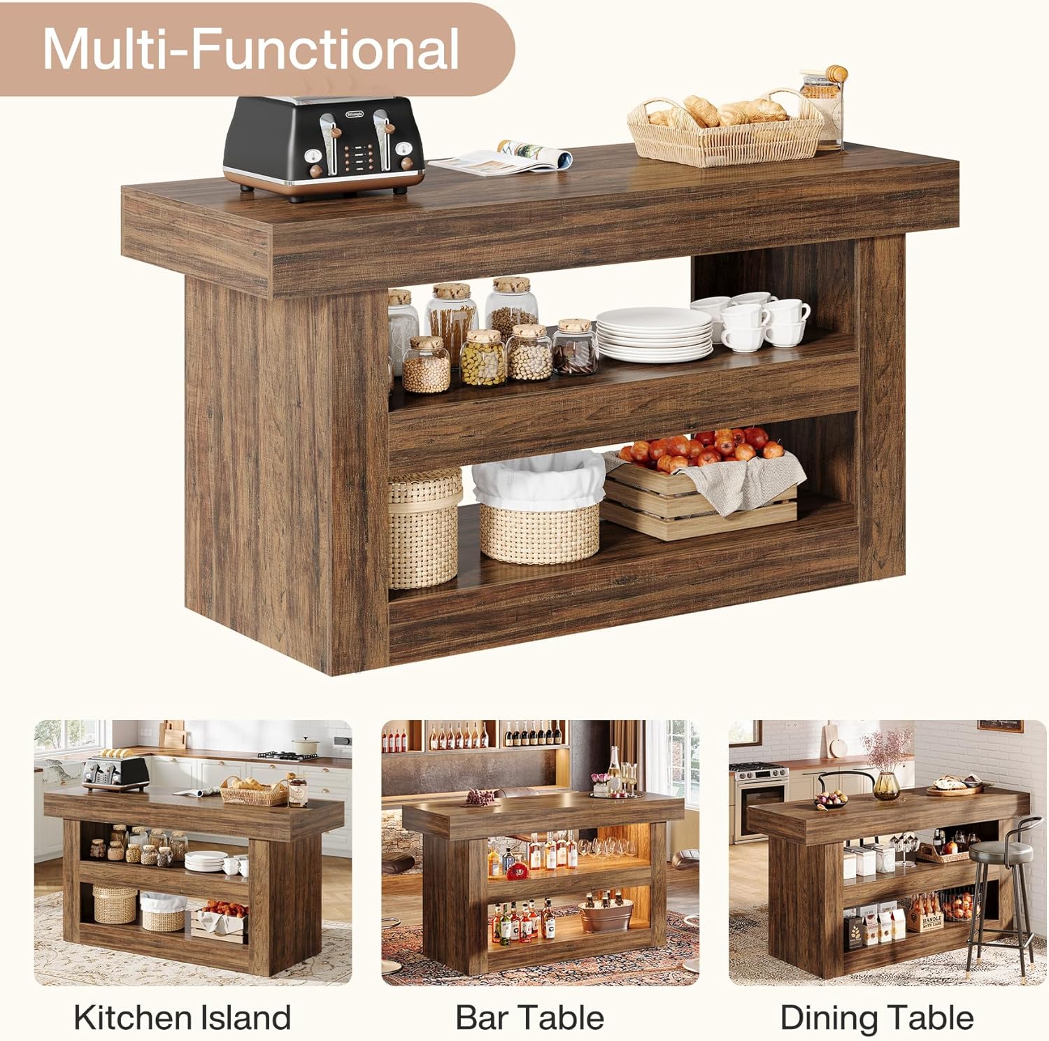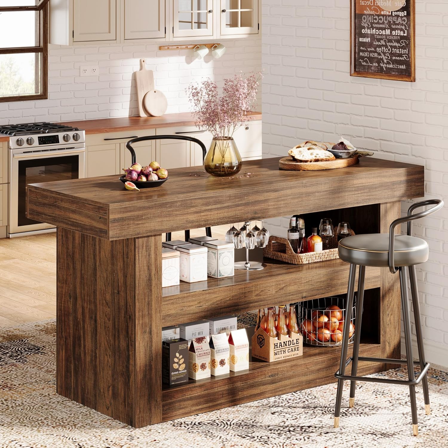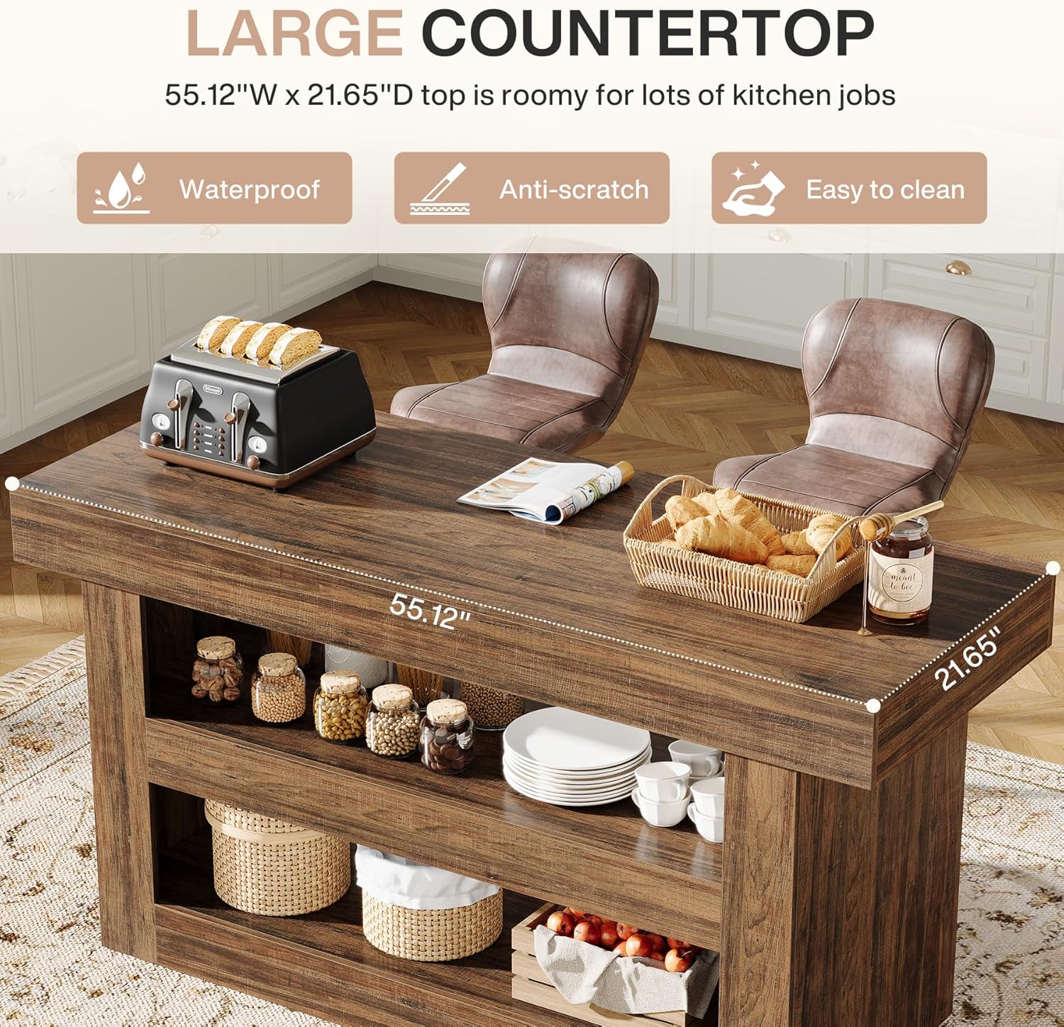 Spacious Design - Our kitchen island offers a generous 55.12" x 21.65" countertop, perfect for meal prep, serving, or casual dining while the rustic woodgrain finish adds a charming farmhouse touch.