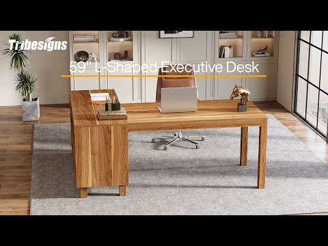 59" L-Shaped Executive Desk, Computer Desk Home Office Desk With Storage Cabinet