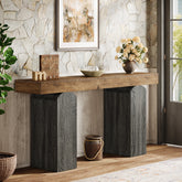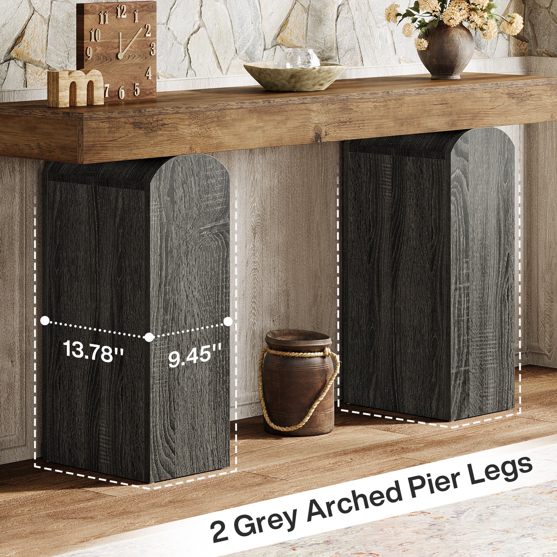 Vintage Two-Tone Design - This 63" console table features a rustic brown-grain tabletop and vintage gray-grain arched legs, embodying a unique farmhouse charm perfect for living rooms, entryways, or hallways.