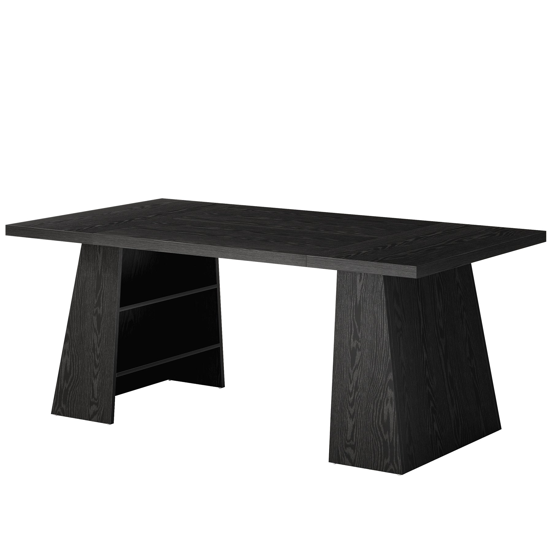 Storage with Style - Our rectangular dining table is not just an eating place but a practical storage solution too. Its double pedestal base features a 2-tier shelf, each supporting up to 50 lbs, perfect for keeping dining essentials.