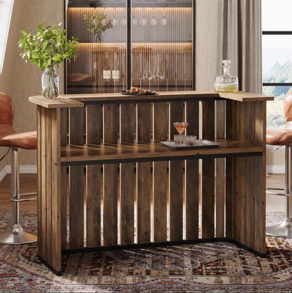 63" Home Bar Unit, Farmhouse Liquor Bar Table with 2 - Tier Shelves Tribesigns