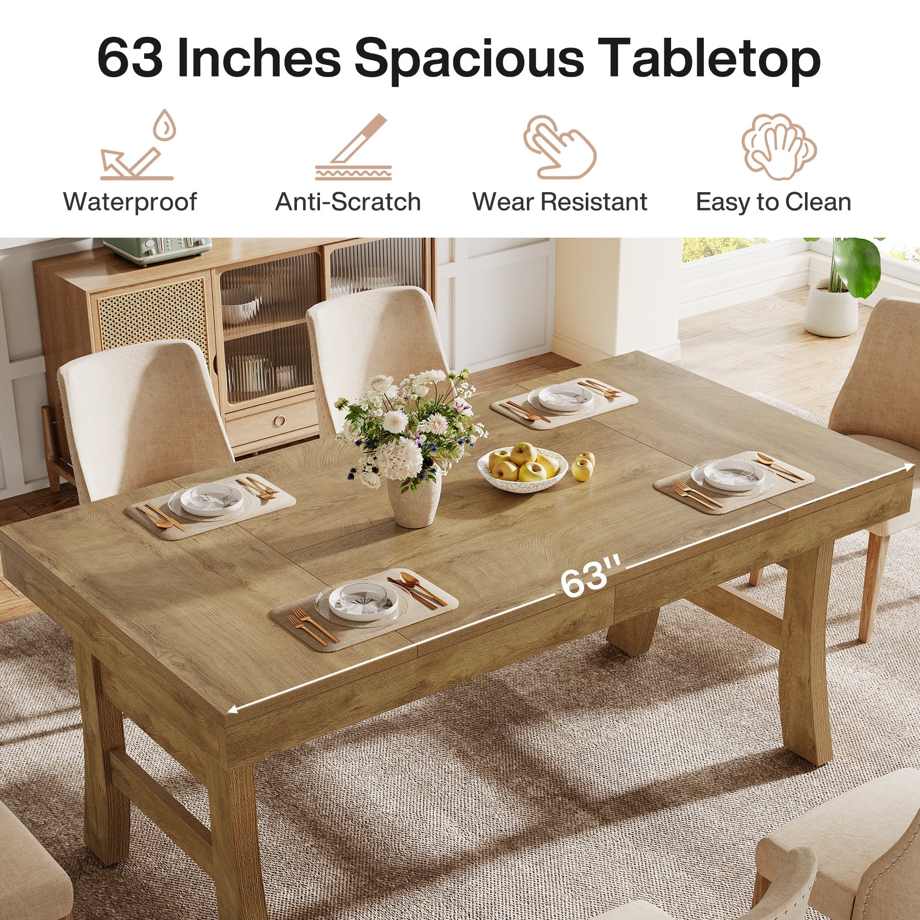 63" Dining Table, Farmhouse Kitchen Dinner Table for 4-6 People
