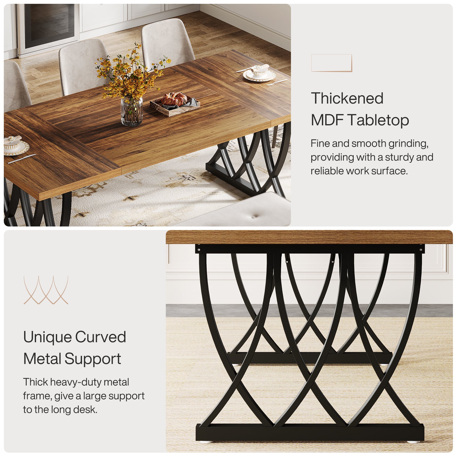 Entertain in Style - Elevate your dining experience with the Tribesigns Dining Table. Spanning 70.86 inches, it comfortably seats 6-8 guests, making it an excellent centerpiece for your kitchen or living room.