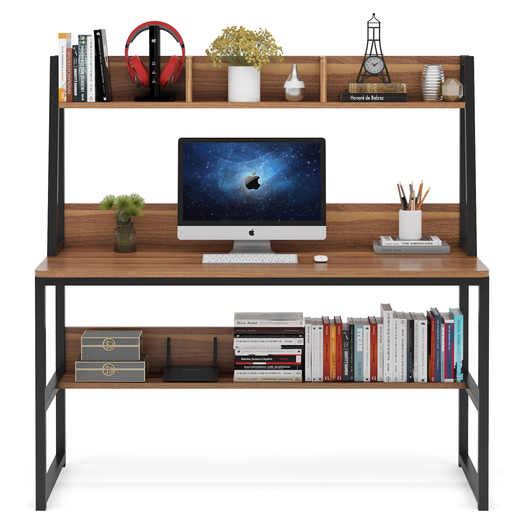 Modern Computer Desk with Hutch, 47" Office Desk with Storage Shelves Tribesigns