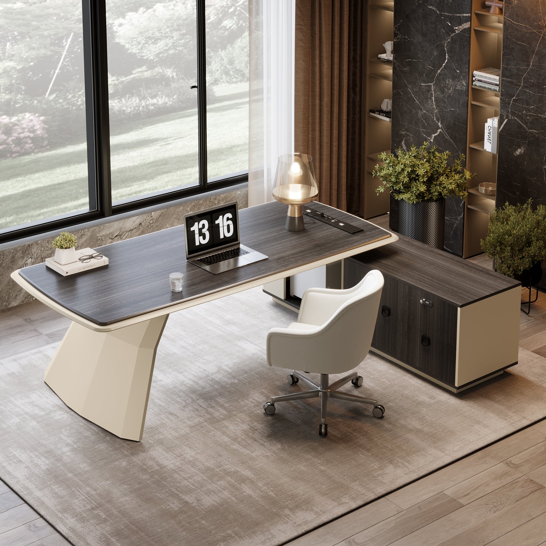 L-Shaped Efficiency - With dimensions of 70.87" D x 86.61" W, this reversible desk provides ample workspace to enhance productivity, perfect for executives. Its stylish privacy panel ensures immersive work.
