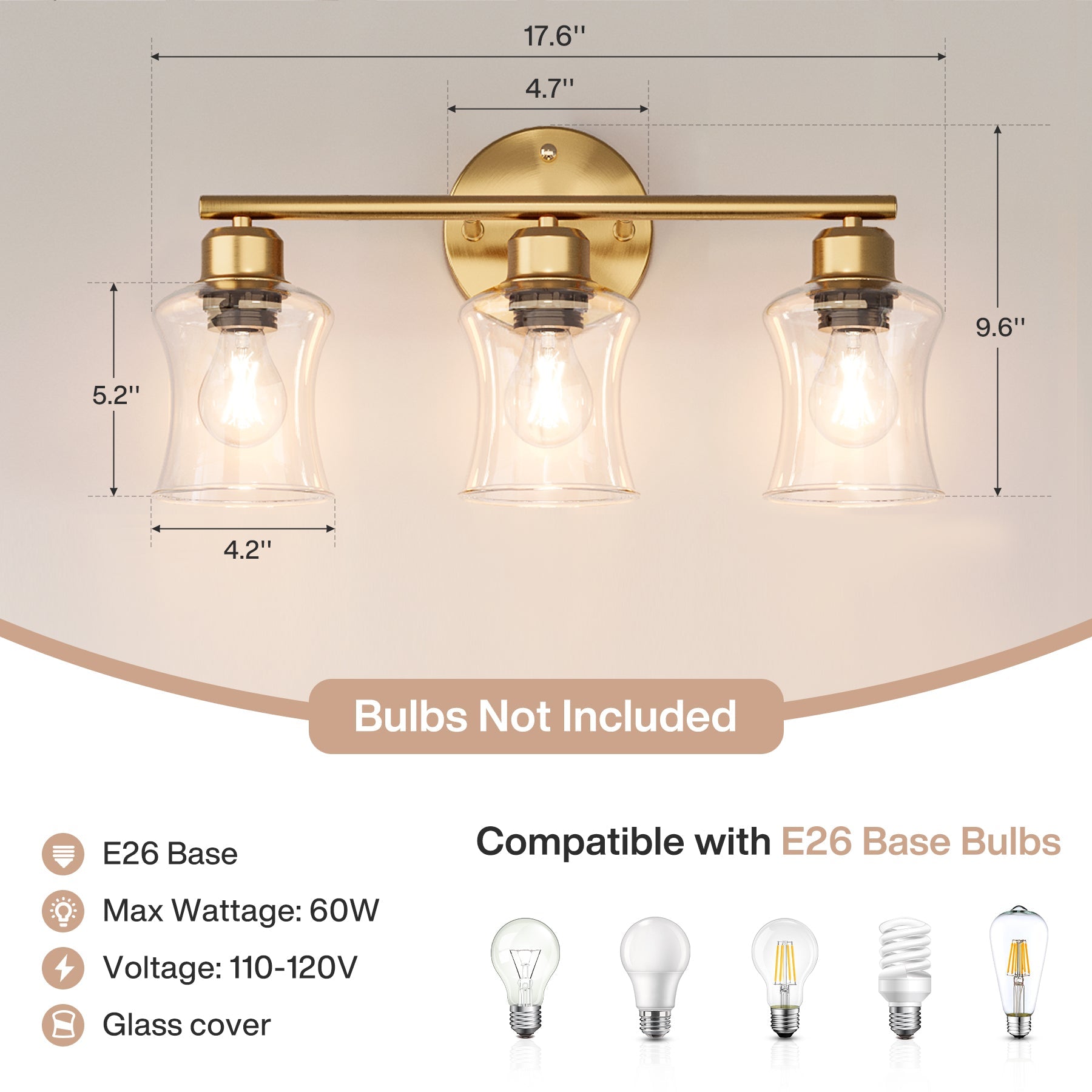 3-Light Light Fixtures, Modern Bathroom Wall Lights with Clear Glass Shades