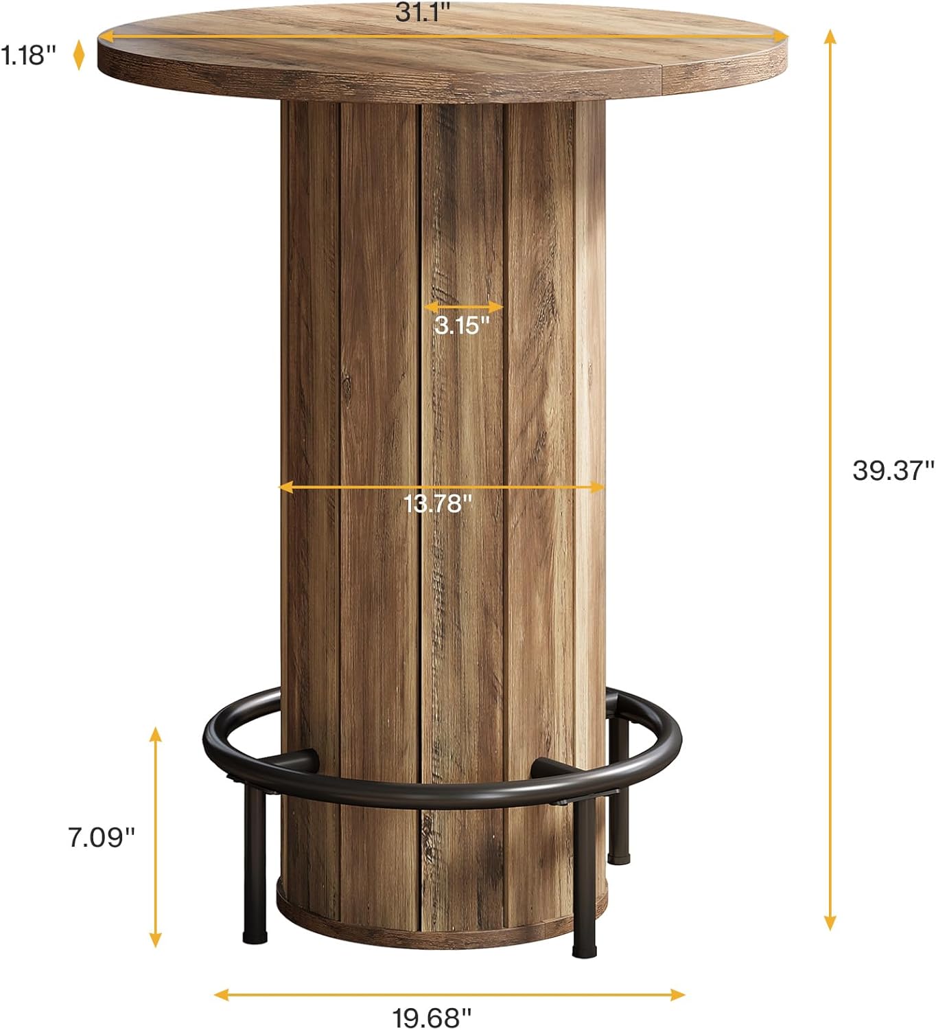 31" Bar Table, Round Bistro Pub Table with Footrest for Dining Coffee Cocktail(Only Table) Tribesigns