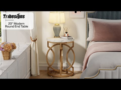 Tribesigns Faux Marble White Round Side Table with Unique gold Ring-Shape Frame