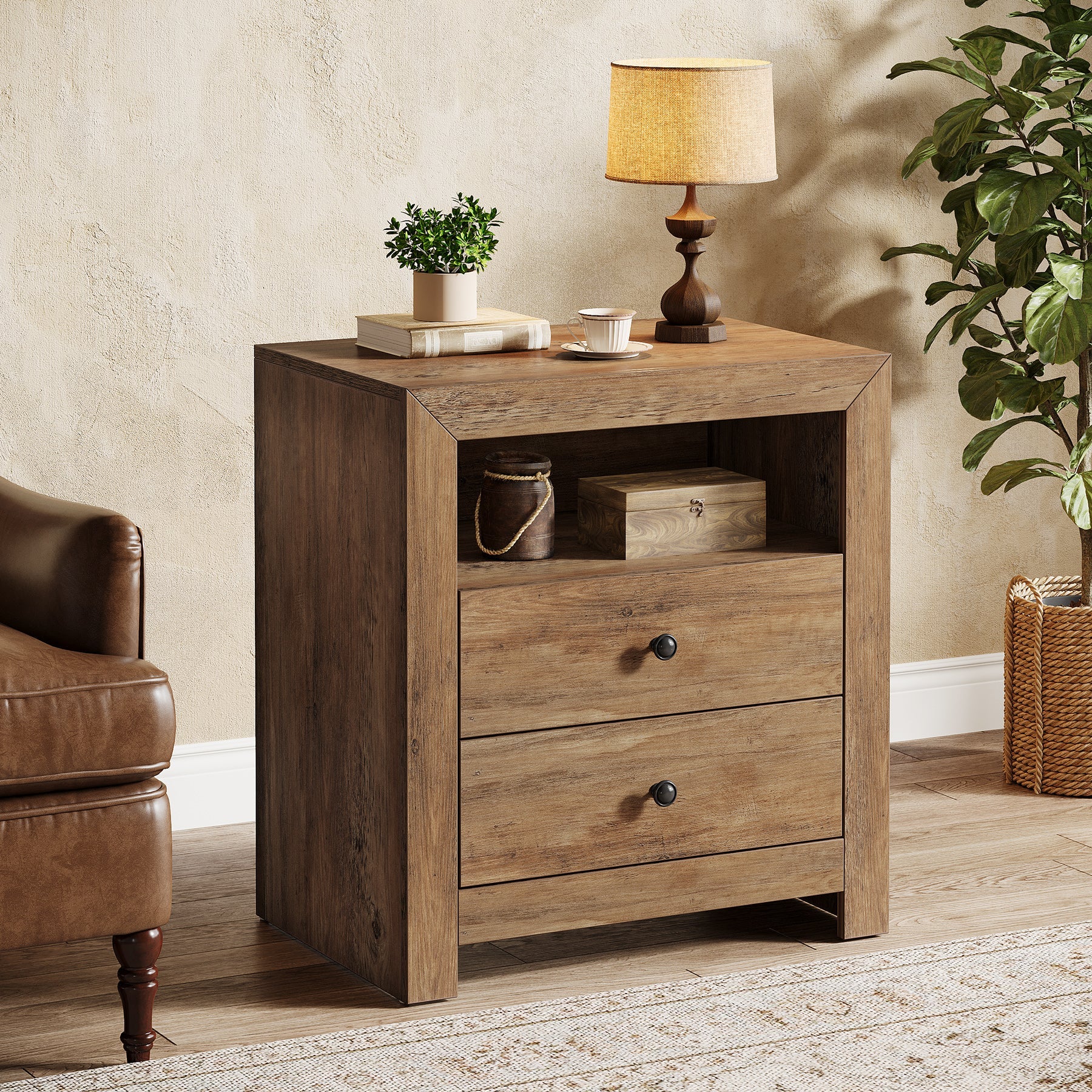 Ample Storage Space - This nightstand features 2 smooth-gliding drawers, 2 open shelves, and a wide tabletop, offering plenty of room for bedroom essentials like books, electronics, and personal items.