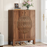 - This shoe cabinet has louvered doors that protect your footwear by providing better ventilation and privacy.